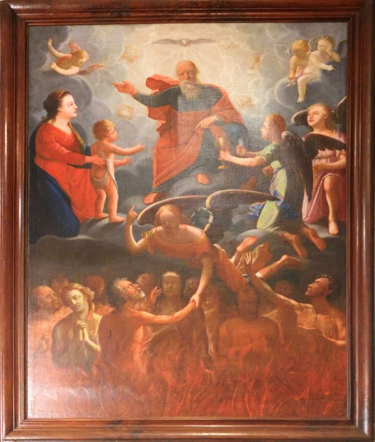 Petit miracle des « âmes du purgatoire » (!), la restauratrice a retrouvé des traces de dessin dans le bas du tableau. Il s’agissait tout simplement des flammes de l’enfer. Il pourra ainsi être reconstitué.