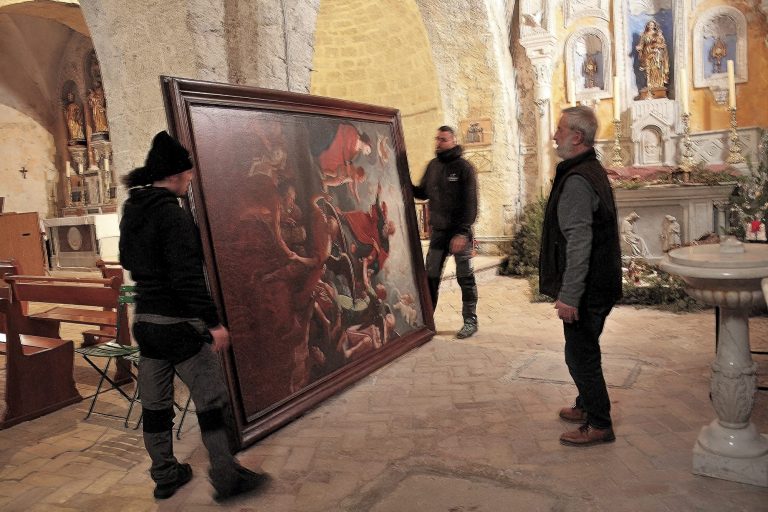 Restauration d’un tableau du XVIIIème siècle, « la délivrance des âmes du purgatoire », dans l’église Sainte-Marie Madeleine, classée aux monuments historiques depuis 1928