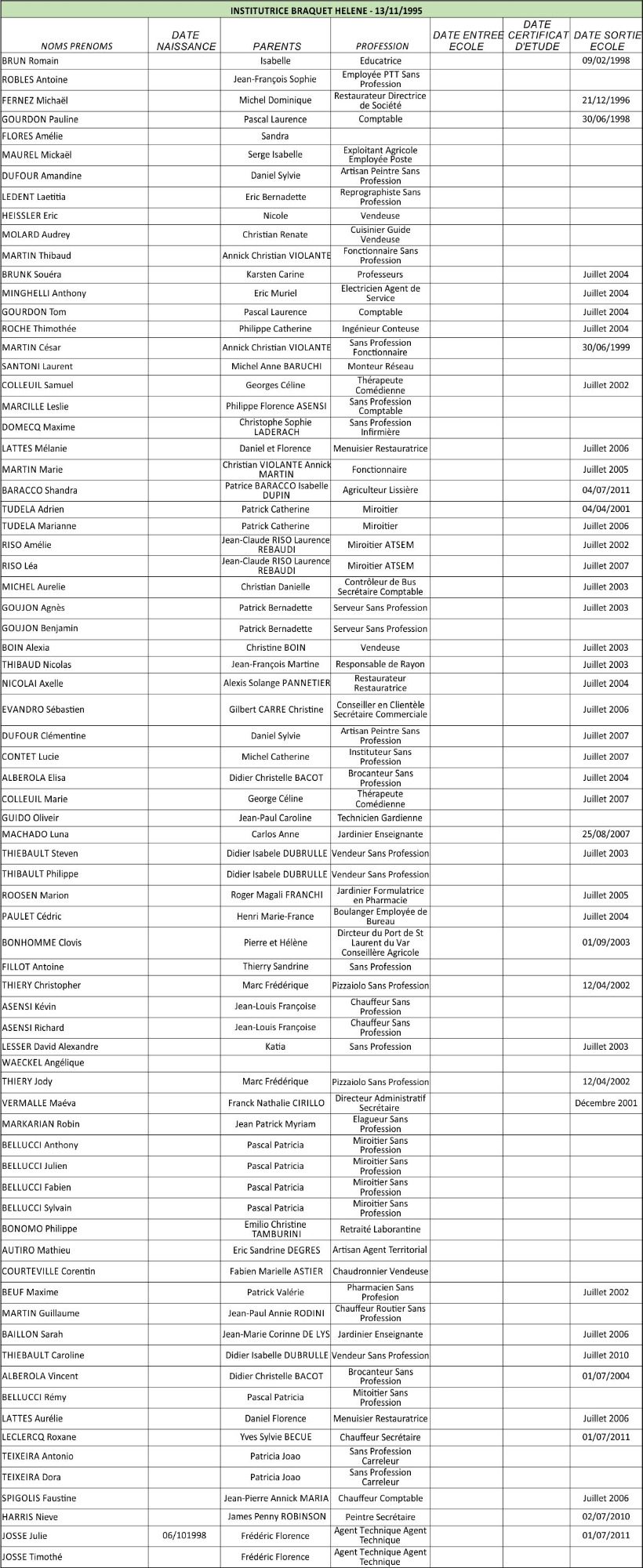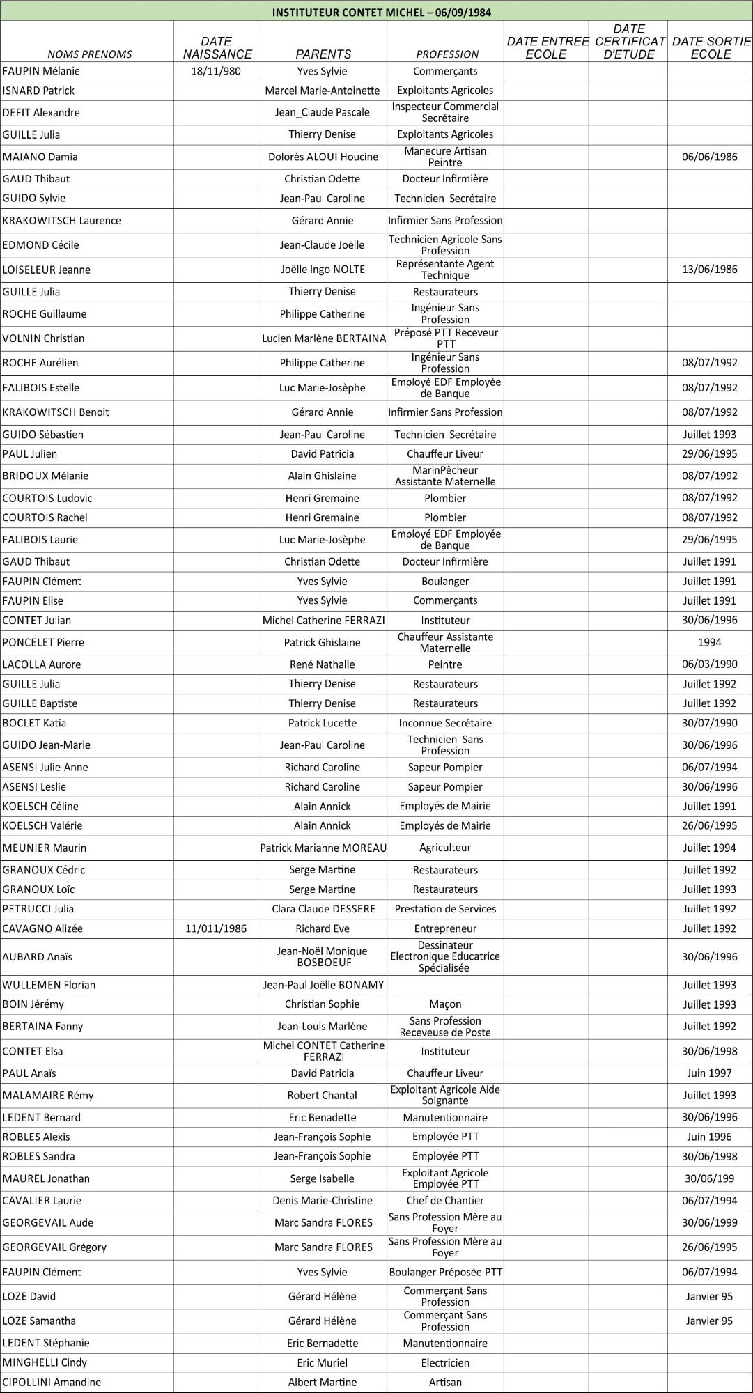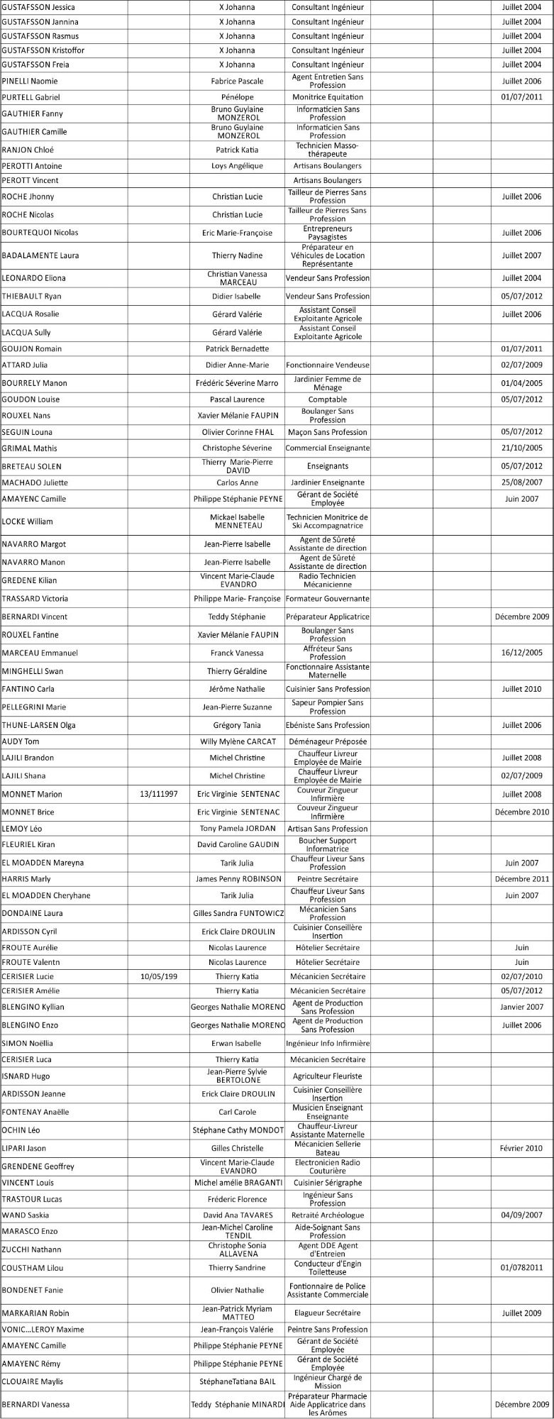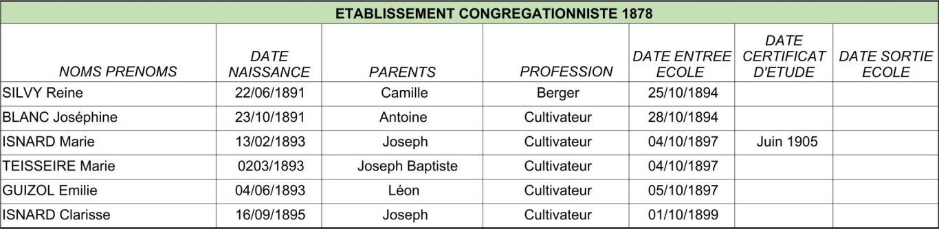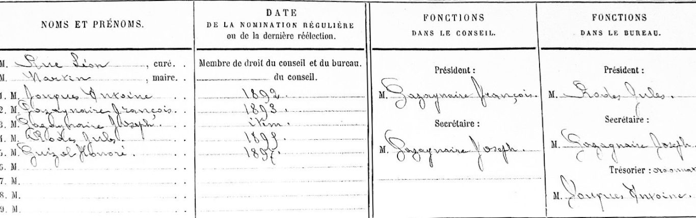 Les signataires du règlement représentaient les familles Aron, Fouques, Gazagnaire, Guizol, Maunier, Mouton, Rodes et Tombarel.