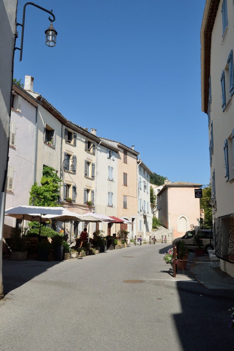 Le rempart qui fermait le village entre l’église et la mairie depuis le Moyen-âge est démoli en 1846. Cette ouverture du village vers l’Est permet de transformer les granges de la Combe en maisons bourgeoises qui abriteront dorénavant la place principale du village, prolongée par une belle allée de tilleuls jusqu’à la place Neuve qui s’ouvre sur la nouvelle route vers Vence.