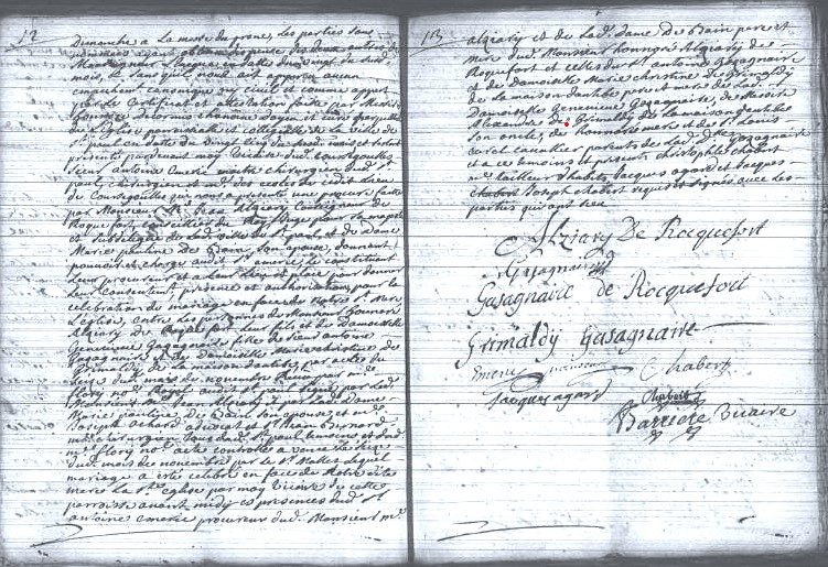 L'acte de mariage d'Honoré Alziary de Roquefort et Marie-Geneviève Gazagnaire