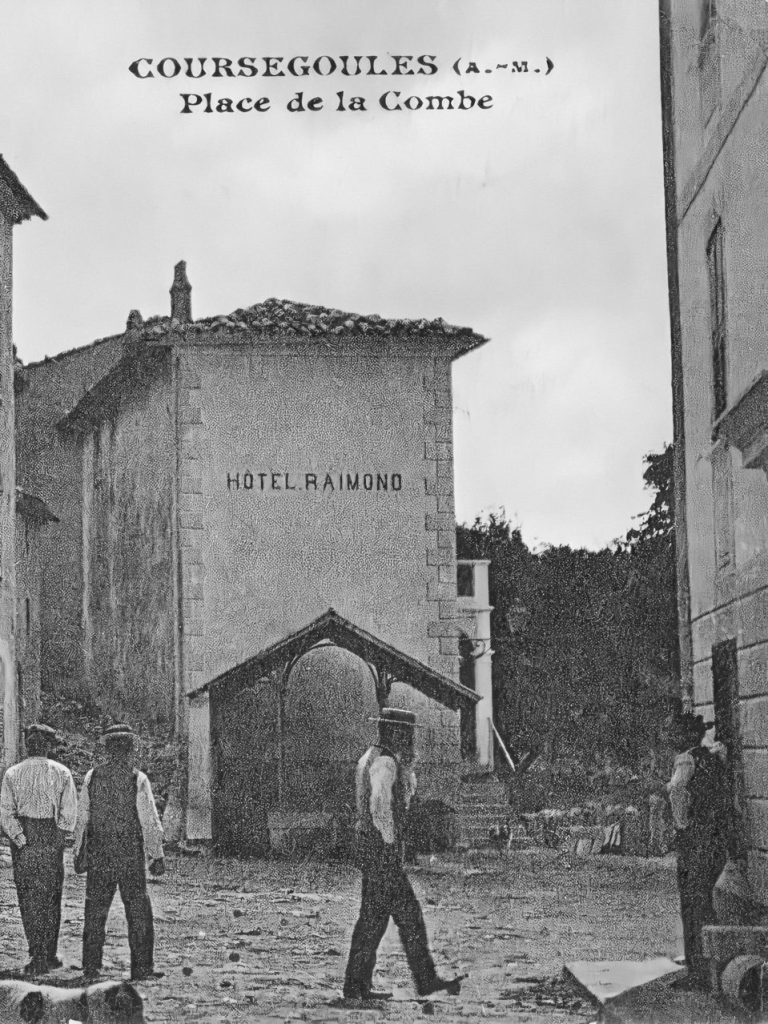- l’apparition des « touristes », et l’ouverture à Coursegoules du premier établissement hôtelier de qualité, l’Hôtel Raimond, dès la fin du XIXème siècle.