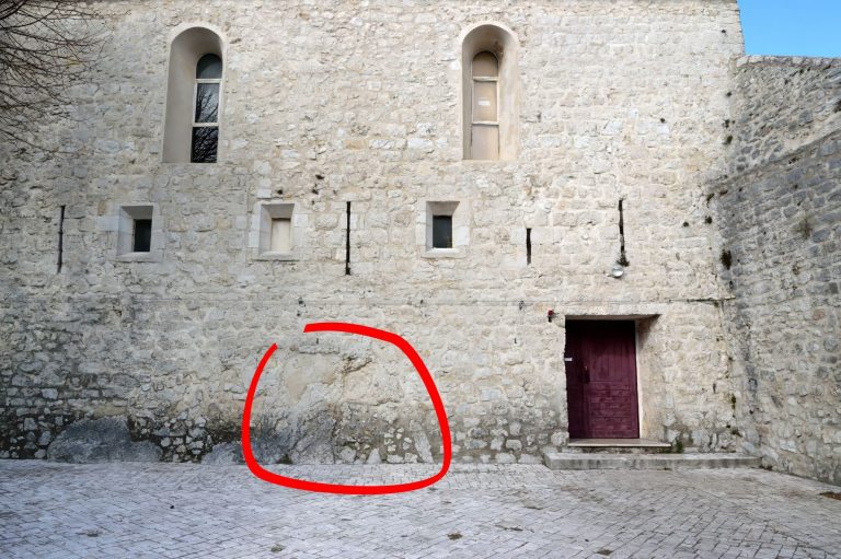 Le Déplacement de la porte latérale : en haut, à l'époque de Lambros; en bas, emplacement actuel