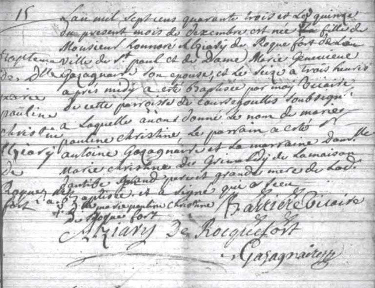Acte de naissance de Marie-Pauline Alziary de Roquefort